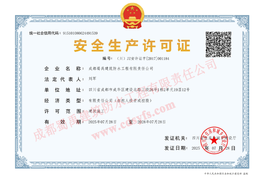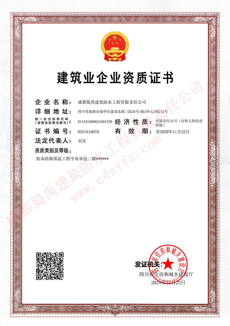 企業(yè)名稱:成都蜀禹建筑防水工程有限責(zé)任公司