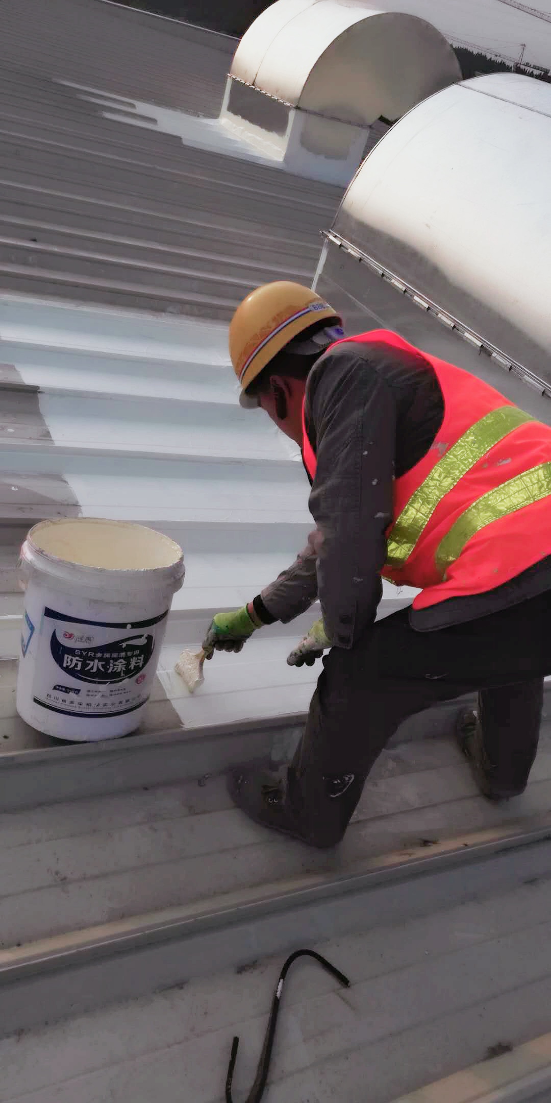 我公司承接的中國牙谷愛齊口腔醫療設備生產基地一期廠房金屬屋面防水工程,工程地位于四川省資陽市高新區,采用本公司的SYR金屬屋面專用防水涂料配合專用的縫織聚酯布,處理效果好。