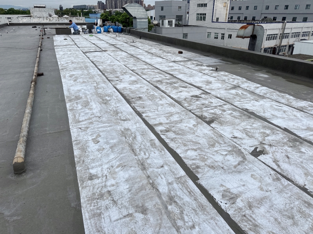 待基層干燥后,涂刷國標一型聚合物防水涂料,并滿鋪貼專用縫織聚酯布,形成一層堅固的防水層。