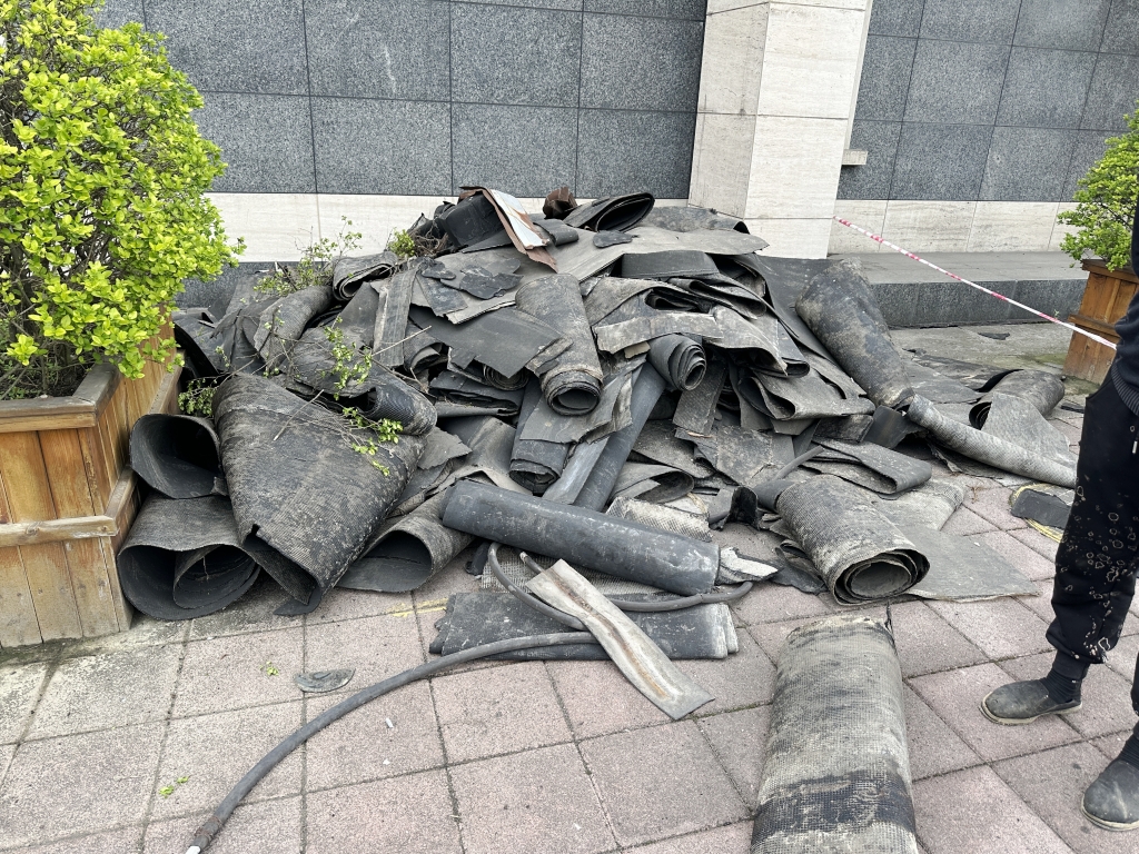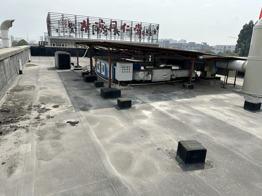 面對(duì)這一挑戰(zhàn),我們采用了先進(jìn)的SYR外露型無縫防水系統(tǒng)。在項(xiàng)目開始之初,我們注意到原屋頂表面覆蓋的是已經(jīng)老化開裂的改性瀝青防水卷材。為了確保防水效果的長(zhǎng)久性和可靠性,我們決定先將這些老舊的防水卷材徹底清除,并對(duì)基層表面進(jìn)行細(xì)致清理,確保每一寸都干凈整潔,為后續(xù)的防水工作打下堅(jiān)實(shí)基礎(chǔ)。