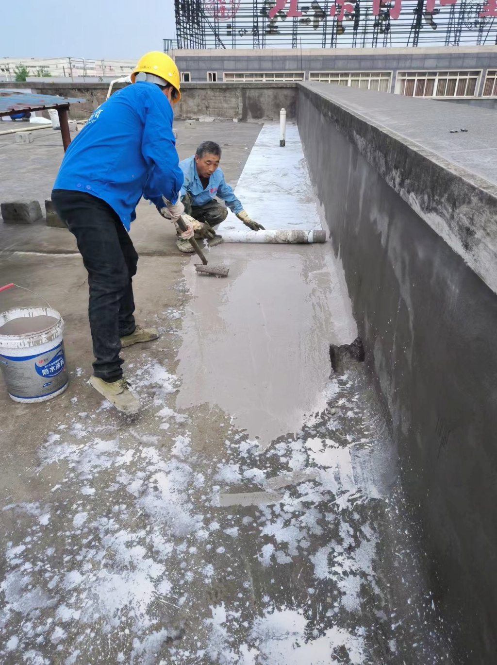 隨后,我們按照專業(yè)的施工流程,首先在基層表面涂刷聚合物防水涂料,并精心鋪貼專用縫織聚酯布。這一步驟不僅增強(qiáng)了防水層的附著力和耐久性,同時(shí)也為后續(xù)的涂層施工提供了良好的基底。接著,我們?cè)俅瓮克⒕酆衔锼喾浪苛希_保涂層均勻且牢固。