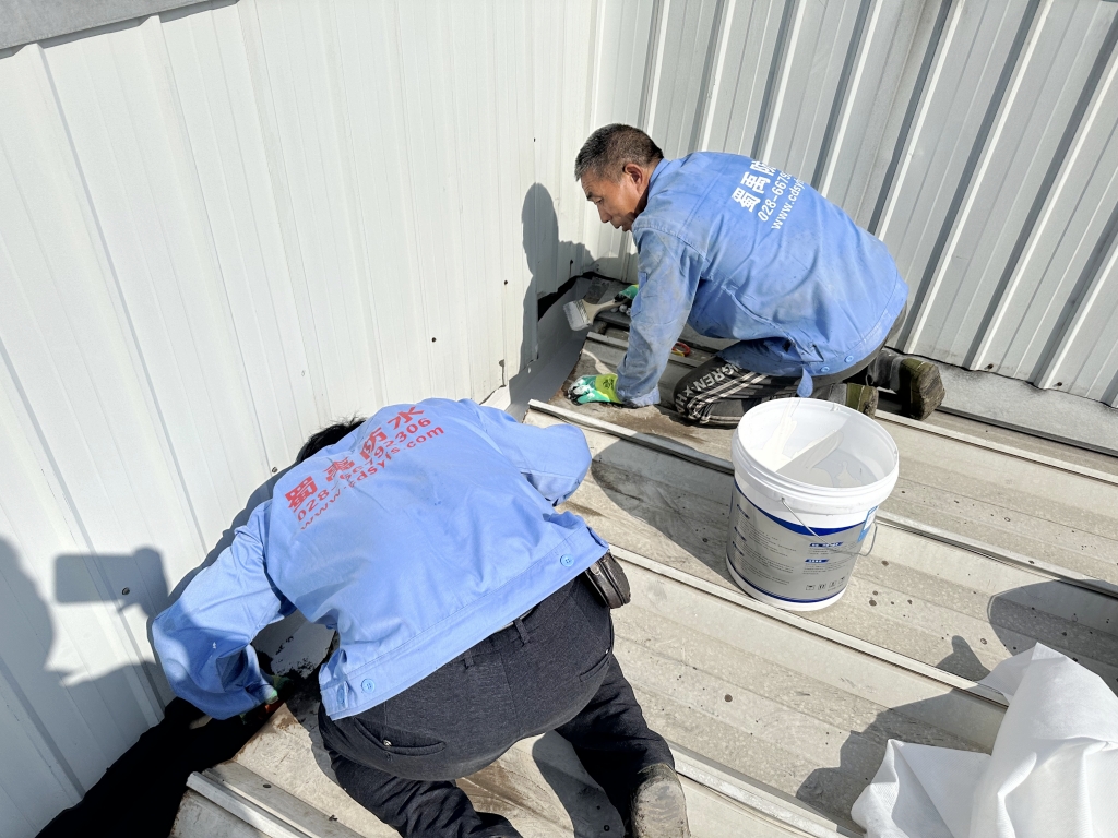蜀禹防水公司接到項目后,立即組織技術團隊前往現場進行勘查,深入分析漏水原因。經過仔細勘察,發現主要漏水點集中在彩鋼瓦的搭接縫、固定螺釘