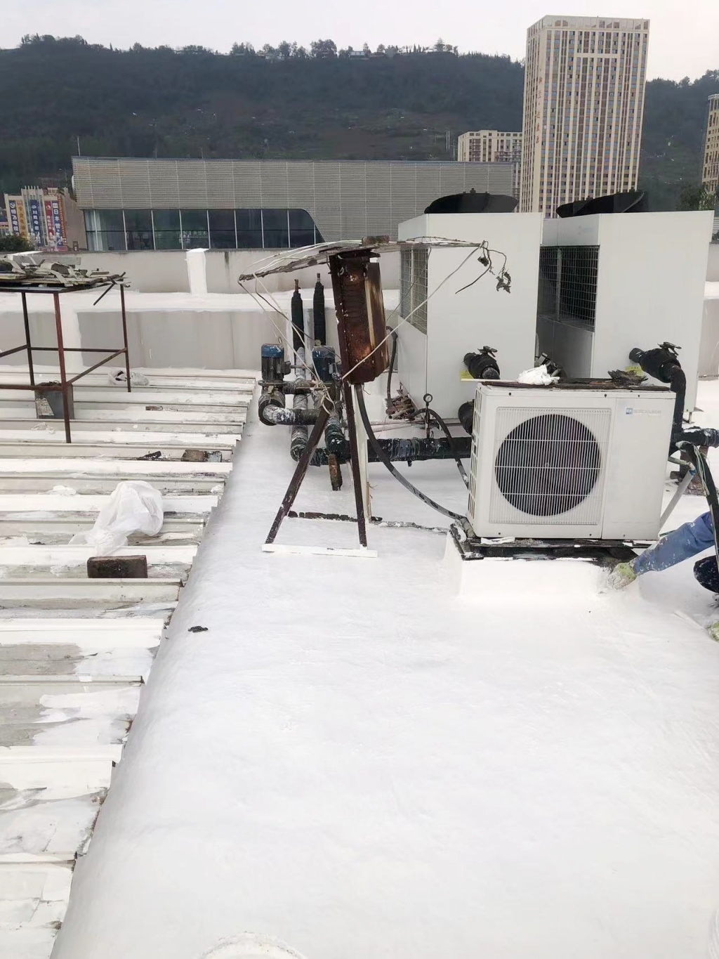 全面檢查與細節處理:施工過程中,蜀禹防水團隊對屋面進行了全面檢查,確保每一處細節都不遺漏。對于發現的潛在漏水隱患,也及時進行了處理,確保