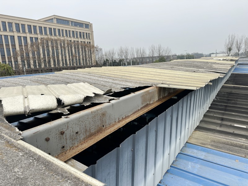成都欣國立低溫科技有限公司位于成都市郫都區,其鋼結構廠房屋頂采光瓦因多年使用出現老化、破裂問題,導致廠房漏雨、采光性能下降,影響生產環境安全及能源效率。業主方經過多方考察,最終委托成都蜀禹建筑防水工程有限責任公司對屋頂氣樓區域的老化玻璃鋼采光瓦進行全面更換,并升級為高性能FRP(玻璃鋼)采光瓦。