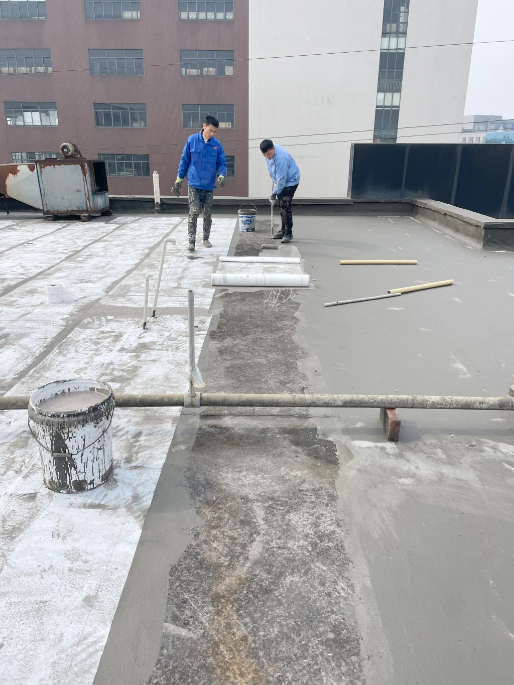 滿做聚合物防水涂料:在修補好的屋頂表面滿做Ⅰ型聚合物防水涂料,該涂料具有良好的粘結性和防水性能,能夠有效滲透到基層孔隙中,形成一道初步的防水屏障。