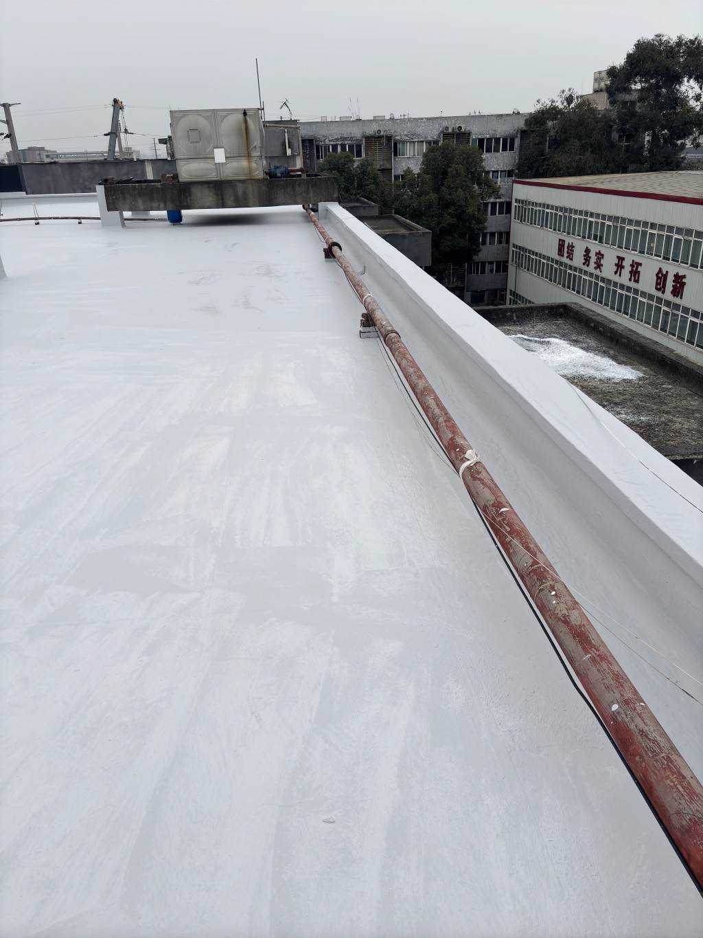 施工前,宿舍樓混凝土屋頂因長期受雨水侵蝕、日曬雨淋,加上部分區域出現破損,屋頂漏水問題頻發。