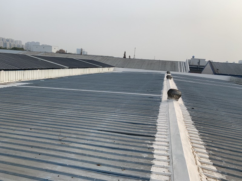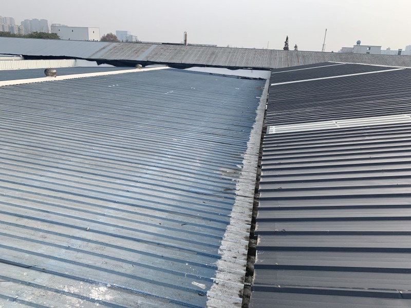 四川省歐朗仕汽車配件有限責(zé)任公司彩鋼頂廠房位于成都市雙流區(qū)羅漢路,此次處理的廠房為廠區(qū)內(nèi)一、二、四、五、六、七、住宿樓的屋頂防水,彩鋼頂漏水情況以前表現(xiàn)出的現(xiàn)象是,在室內(nèi)看到是兩邊靠近水溝的位置,下雨的時(shí)候從水溝位置漏水下來,后來將水溝全部進(jìn)行防水處理了,結(jié)果下雨的時(shí)候還是漏水,搭著梯子仔細(xì)檢查才發(fā)現(xiàn),彩鋼頂頂部的個(gè)別縫隙也在漏水,水從彩鋼頂斜坡上面漏水到了彩鋼瓦的夾層中,水在夾層中順著斜坡流至斜坡底端才漏下來,結(jié)果就是從靠近水溝的位置漏下來,如果不搭著梯子的話,從下面遠(yuǎn)遠(yuǎn)觀看,就以為是水溝在漏水,后來將漏水位置的上面斜坡部位彩鋼接縫進(jìn)行防水處理了,再下雨就沒有漏水現(xiàn)象發(fā)生了,所以由于彩鋼頂?shù)奶厥庑裕赡軙?huì)在彩鋼頂斜坡內(nèi)順著下滑至底端靠近水溝位置漏水,所以處理彩鋼頂漏水一般要將漏水位置對(duì)應(yīng)的上面斜坡位置都進(jìn)行防水處理才行。